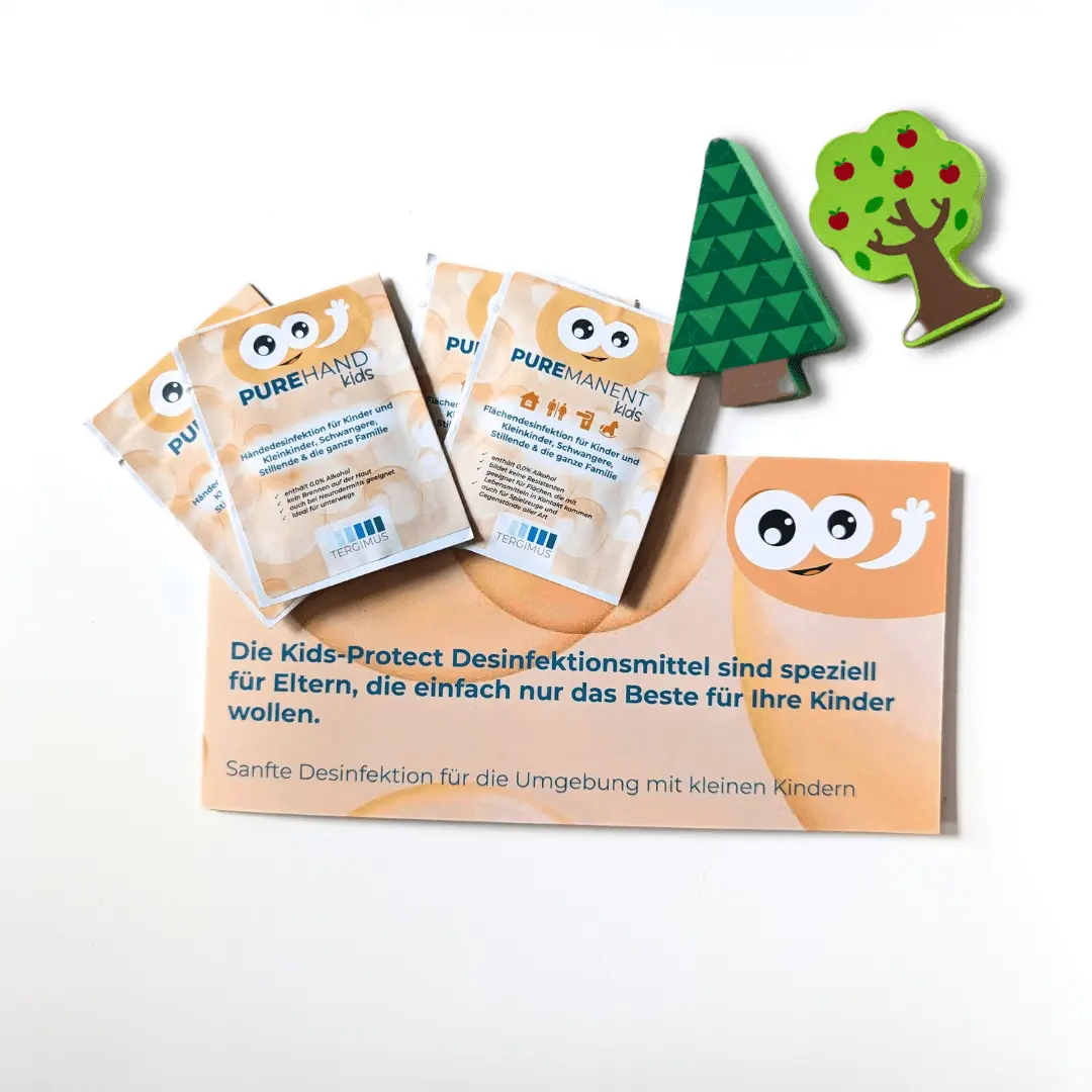 Im Probierset erhältst du einzeln verpackte PUREHAND Kids und PUREMANENT Kids Desinfektionstücher für Kinder (alkoholfrei).*